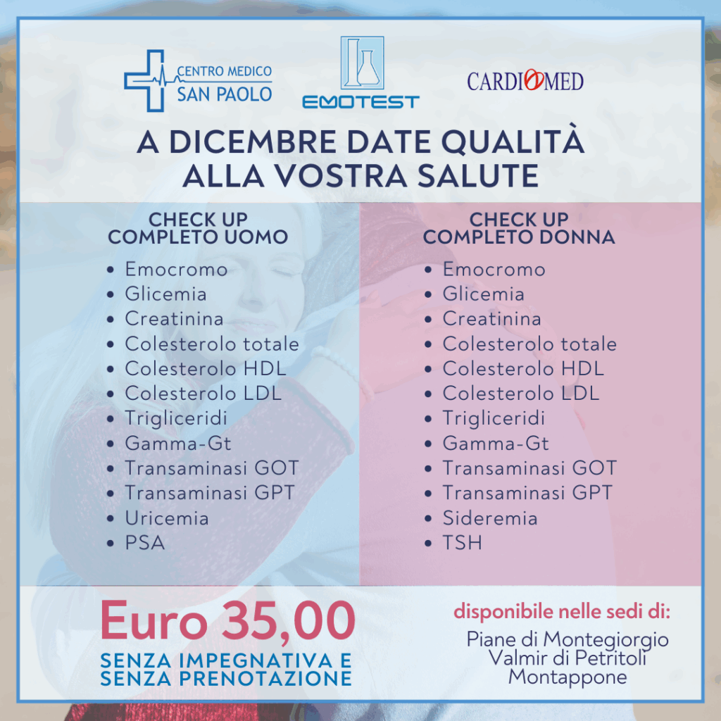 A Dicembre date qualità alla vostra Salute – Pacchetto Check Up